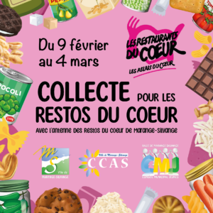Du 9 février au 4 mars 2026, la commune, en lien avec le C.C.A.S., les CMJ et l’antenne des restos du cœur de Marange-Silvange, organise une collecte alimentaire au profit des restos du cœur.